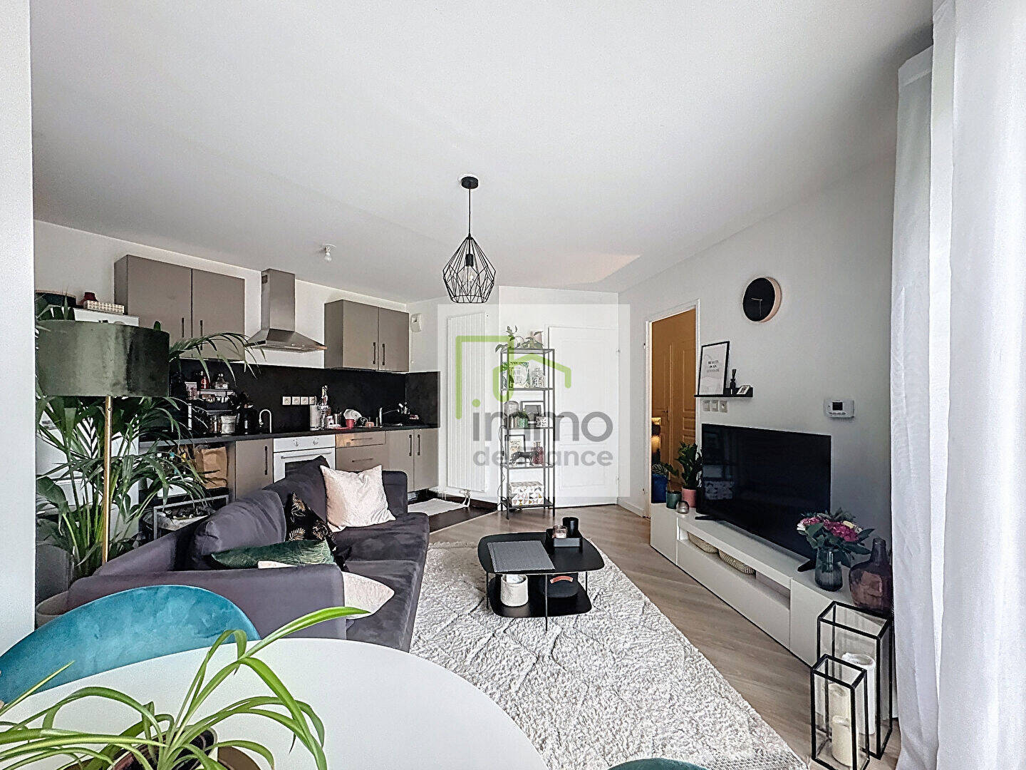 Bel appartement type 2 de 47m² comprenant son entrée, sa pièce de vie lumineuse avec cuisine et accès sur une terrasse couverte (donnant sur jardin intérieur), sa salle de bains carrelée, son espace buanderie/cellier côté cuisine avec lave-linge et sa chambre séparée.